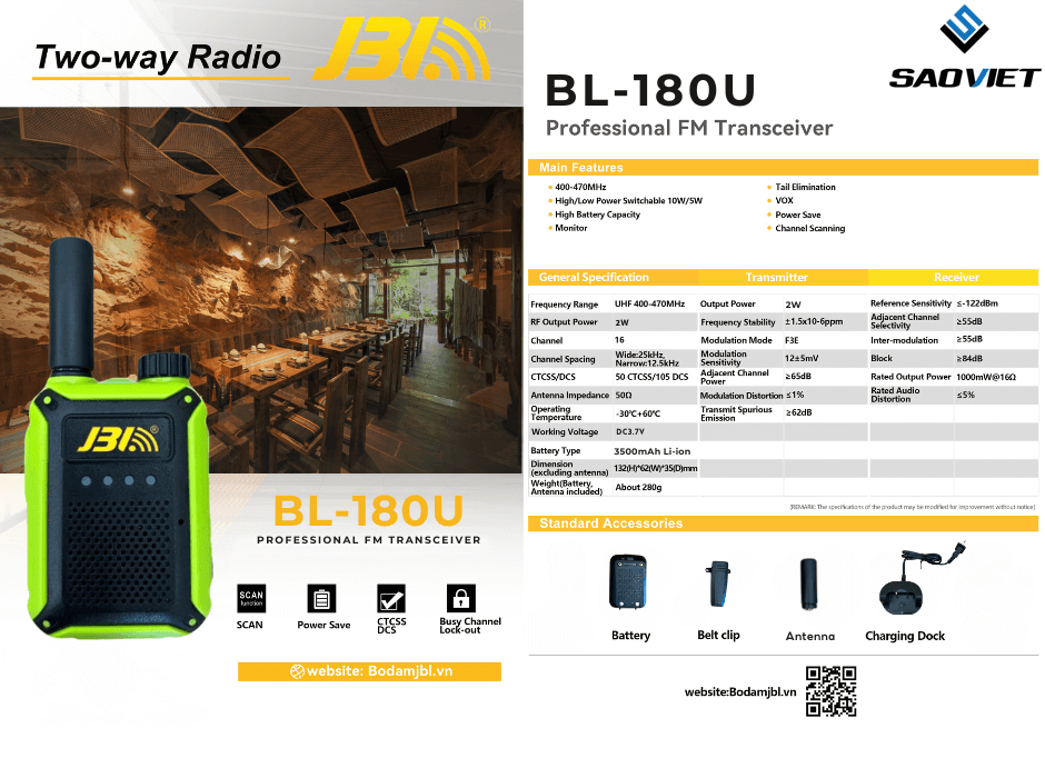 Tính năng nổi bật của máy bộ đàm JBL BL-180U