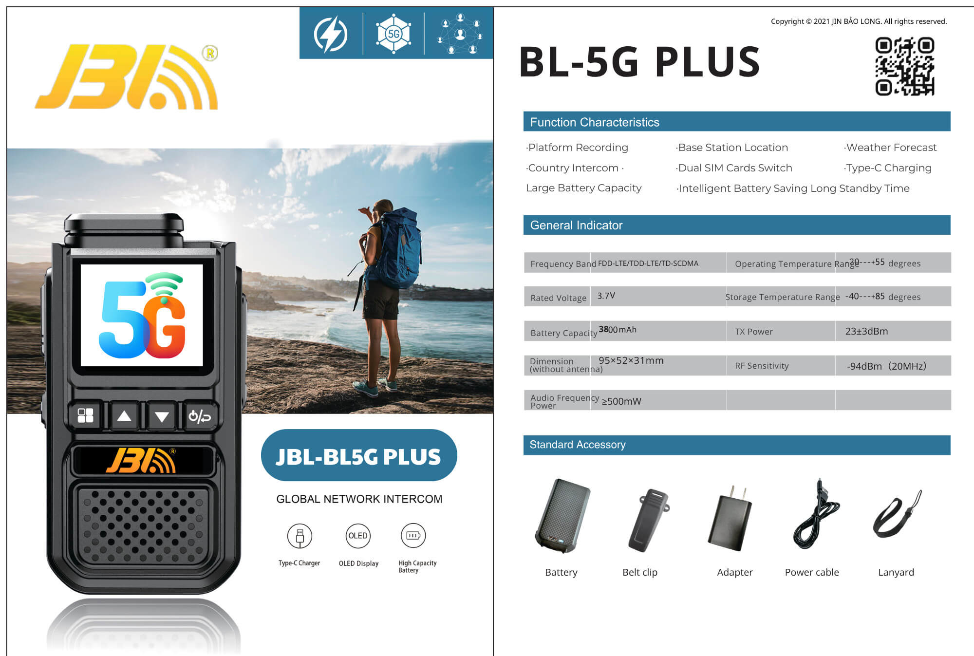 Bộ đàm 5G – Liên lạc không giới hạn. Bộ đàm JBL BL_5G Plus sử dụng trên nền tảng băng thông rộng của các nhà mạng di dộng thông qua sim 3G/4G/LTE, là sự kết hợp giữa tính năng thoại của bộ đàm và cự ly liên lạc của điện thoại di động.