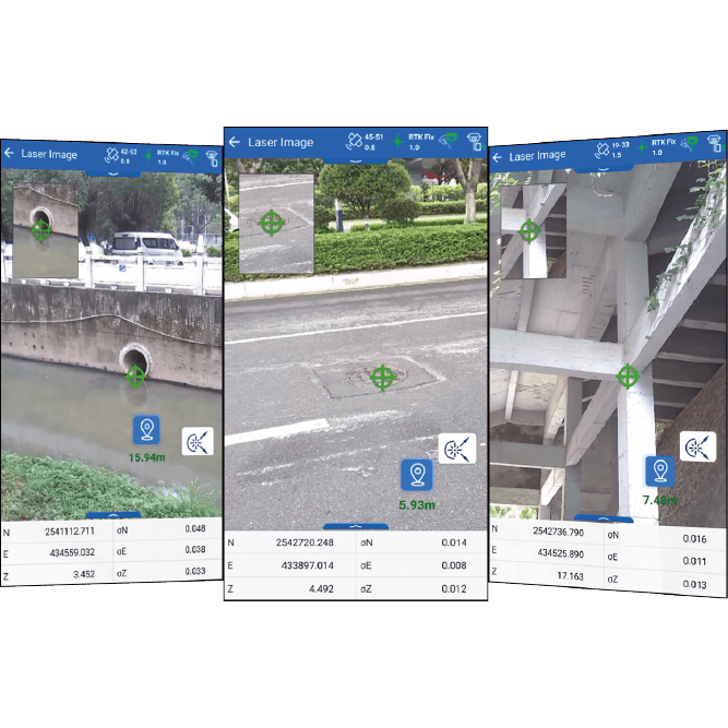 Laser RTK thế hệ mới của Hi-Target kết hợp đo laser độ chính xác cao, ngắm mục tiêu bằng hình ảnh và IMU tự động, cho phép đo nhanh, không tiếp xúc – ngay cả trong những môi trường mất tín hiệu GNSS như dưới gầm cầu, bên trong khu vực rào chắn hoặc qua mương rãnh.